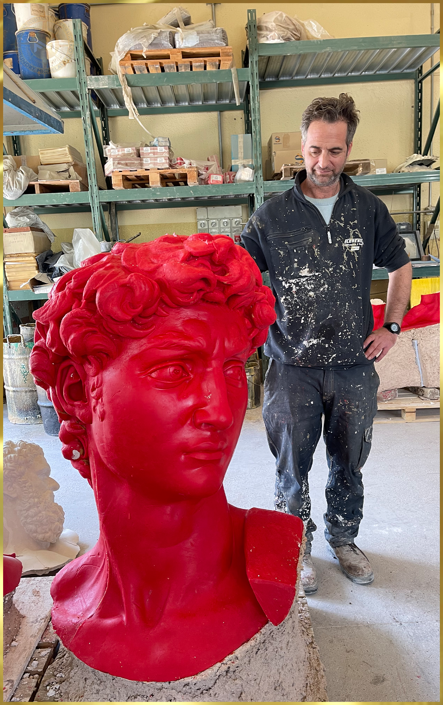 Treasure Investments Corp begins production of Michelangelo’s David, photo features the red wax head in Florence, Italy authorized by Casa Buonarroti